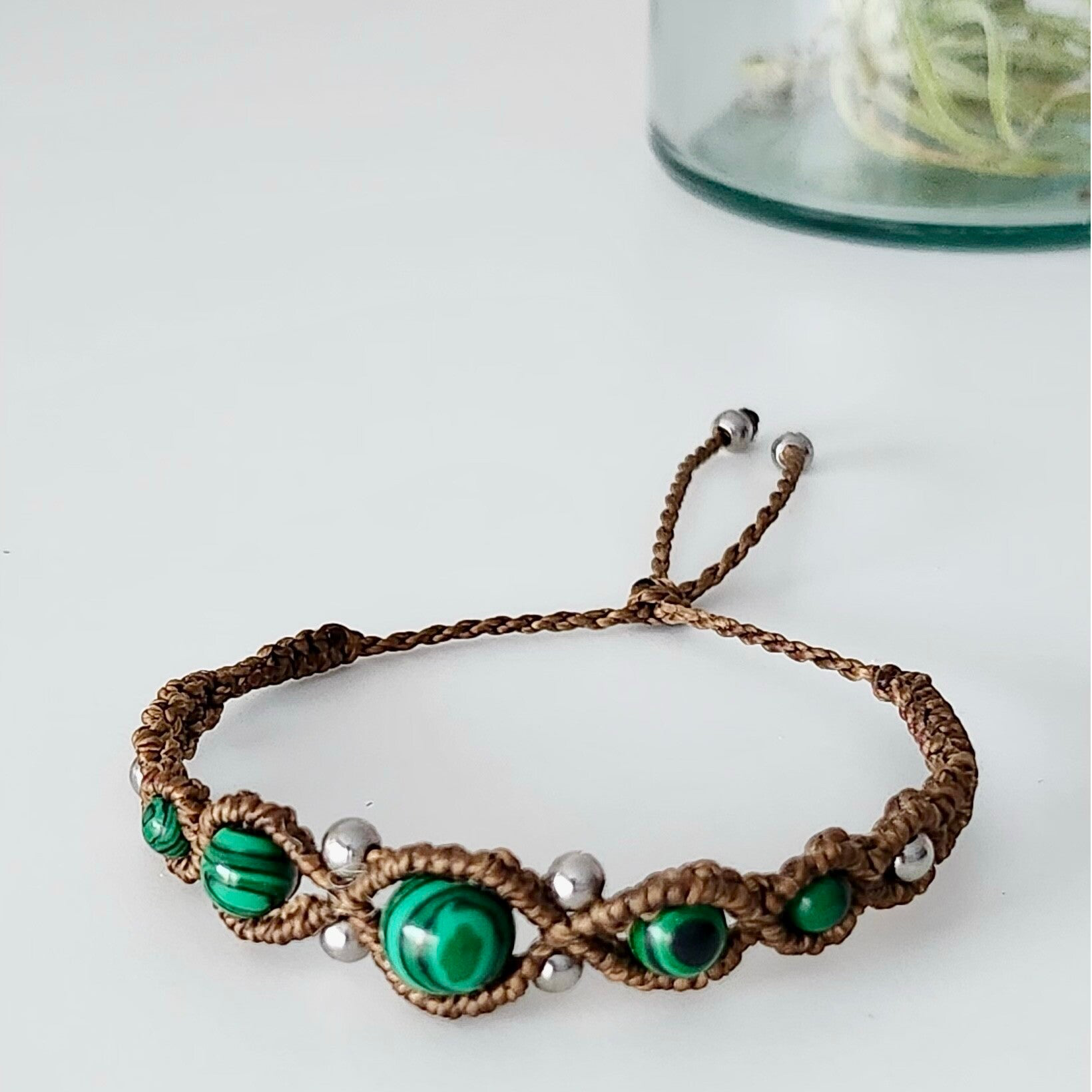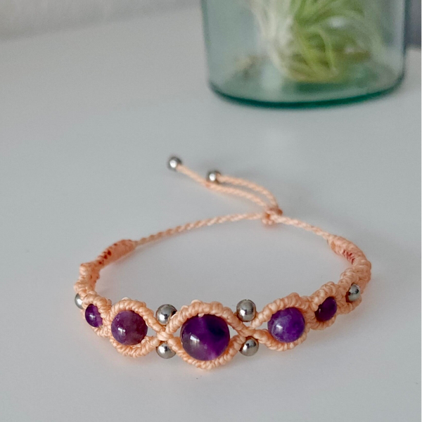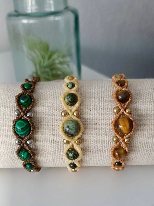 La technique du macramé permet de créer des designs complexes en tissant des fils autour des perles en pierres naturelles. Les perles apportent une touche de couleur et de texture à l'ensemble, tandis que les bracelets sont légers et confortables à porter.